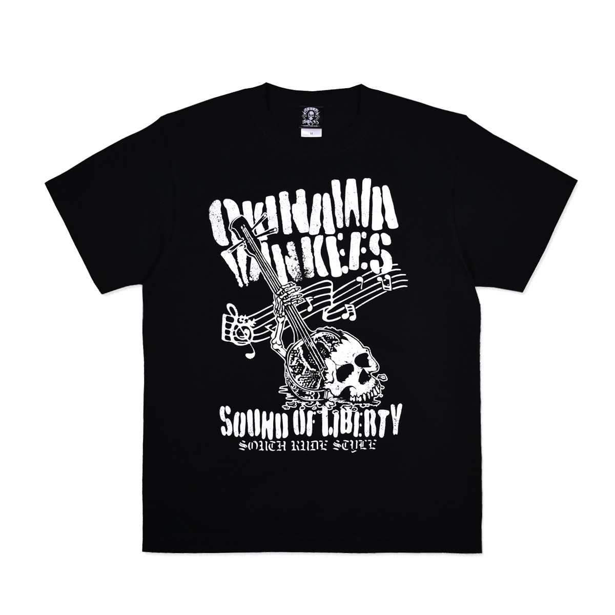 沖縄の三線(さんしん)の弾くROCK'Nなスカルデザイン。