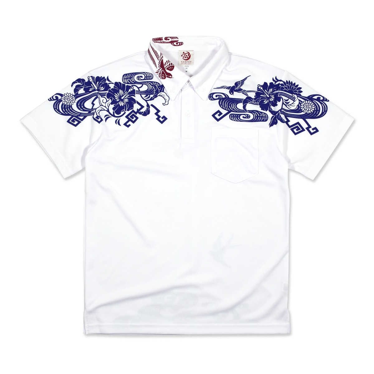 嵐をものともぜす力強く飛ぶ小鳥の姿を、紅型風にアレンジした南天らしいデザインです。