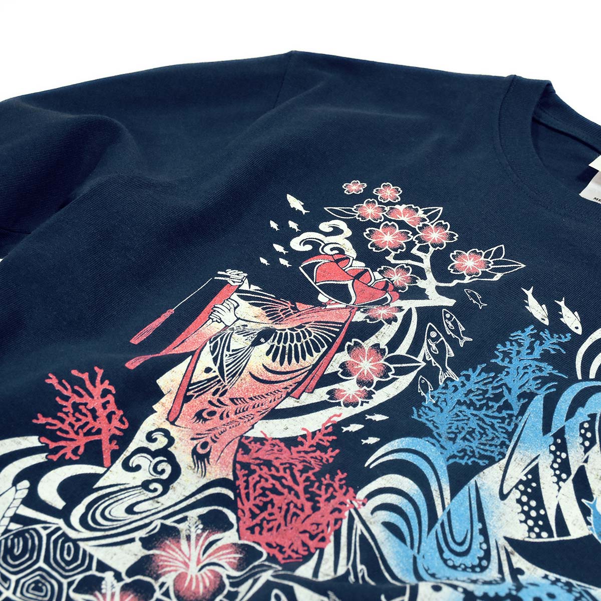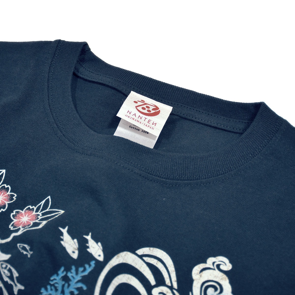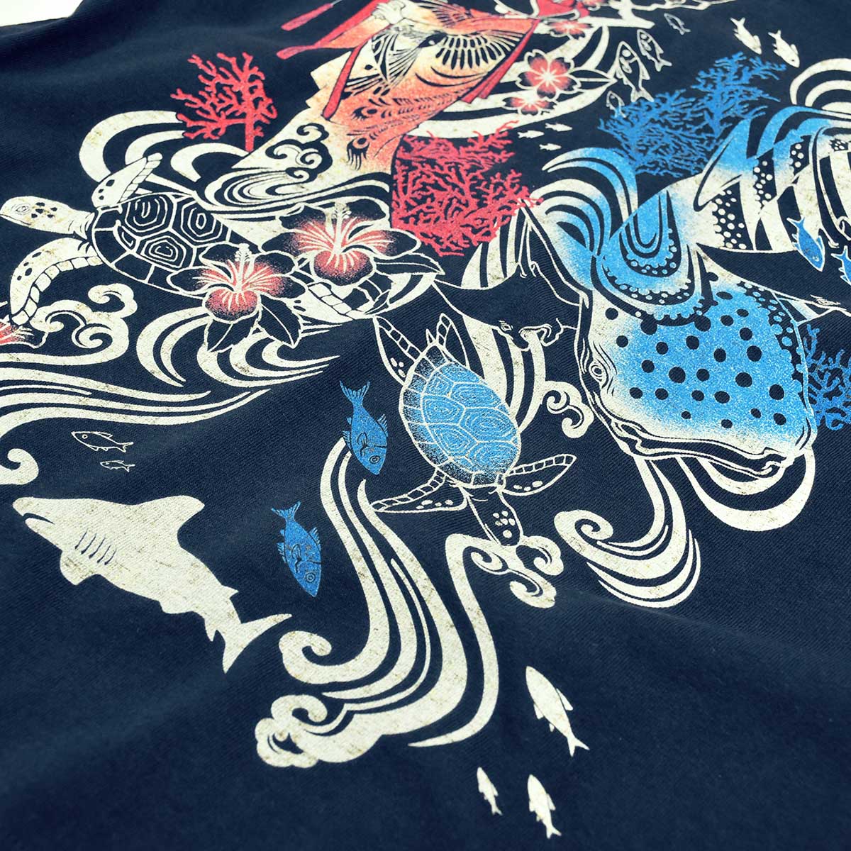 ジンベエザメやウミガメ、サンゴなど沖縄の豊かな海の様子を琉装美人とともにデザイン。