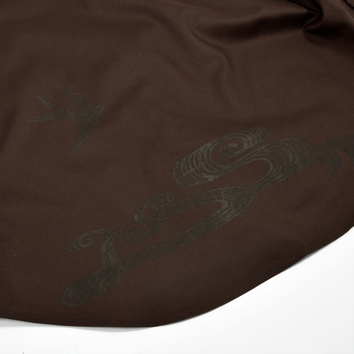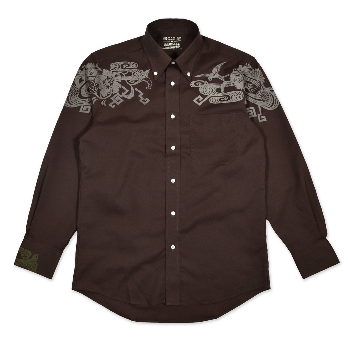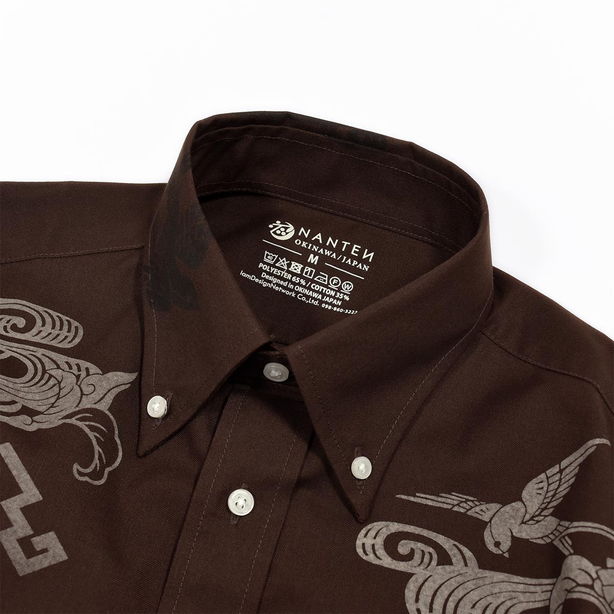 嵐をものともぜす力強く飛ぶ小鳥の姿を、紅型風にアレンジした南天らしいデザインです。