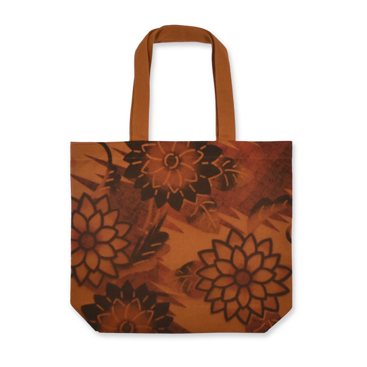 紅型風に表現した菊紋様を落ち着いたトーンであしらいました。