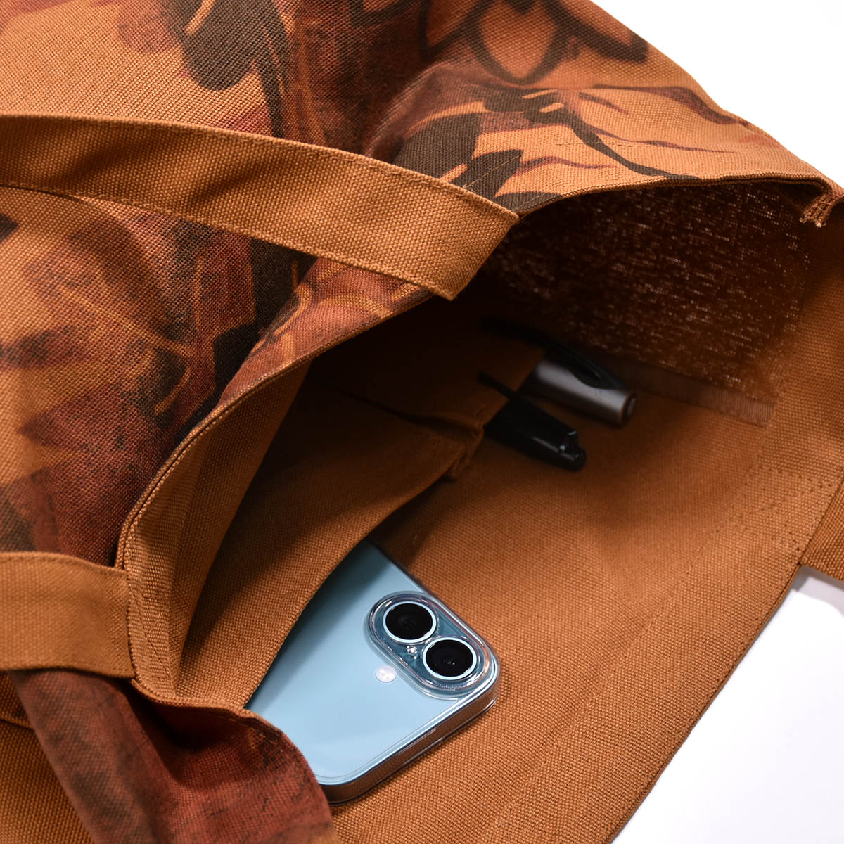 内ポケット付き、A4サイズもすっぽり入るサイズ感のキャンバス地トートバッグです。