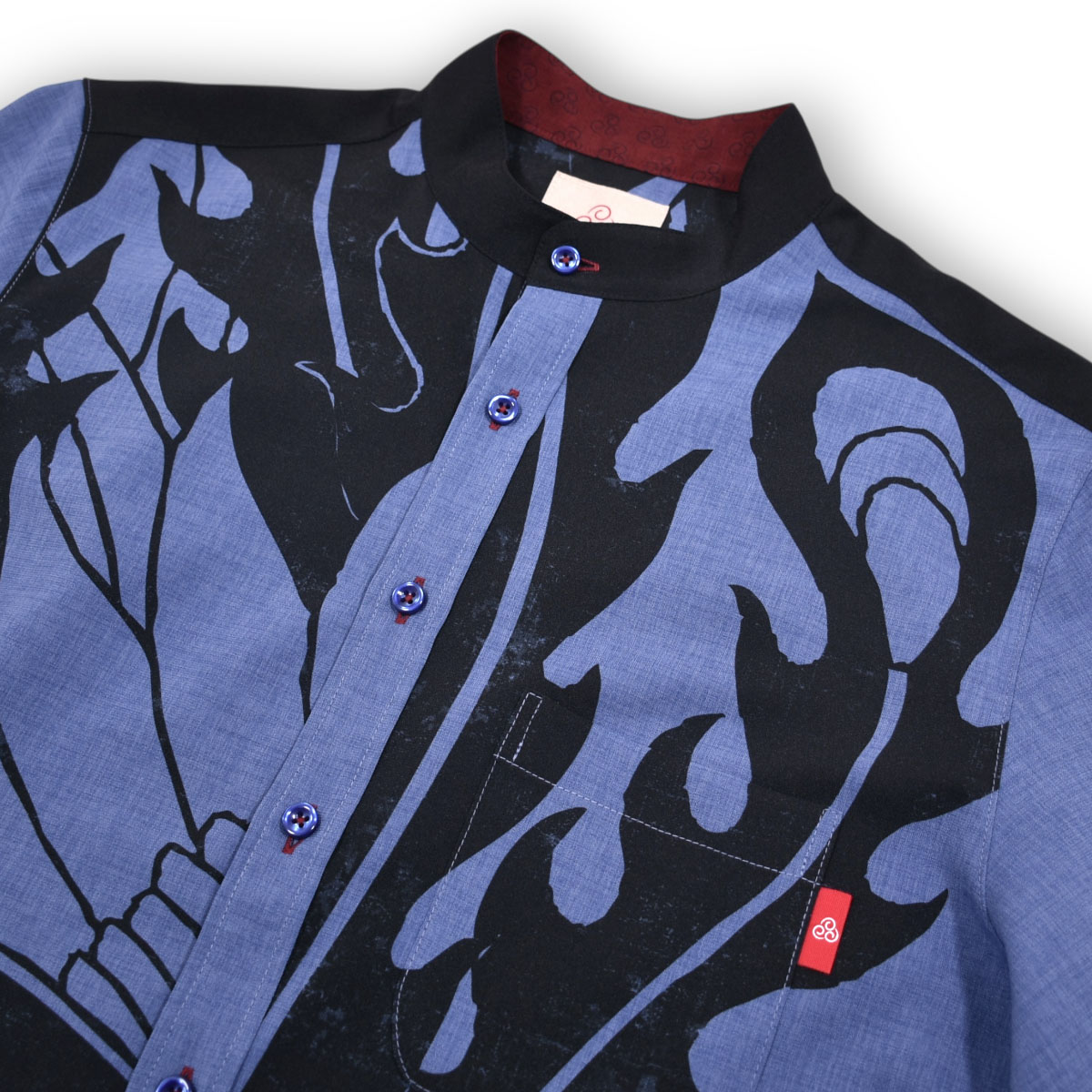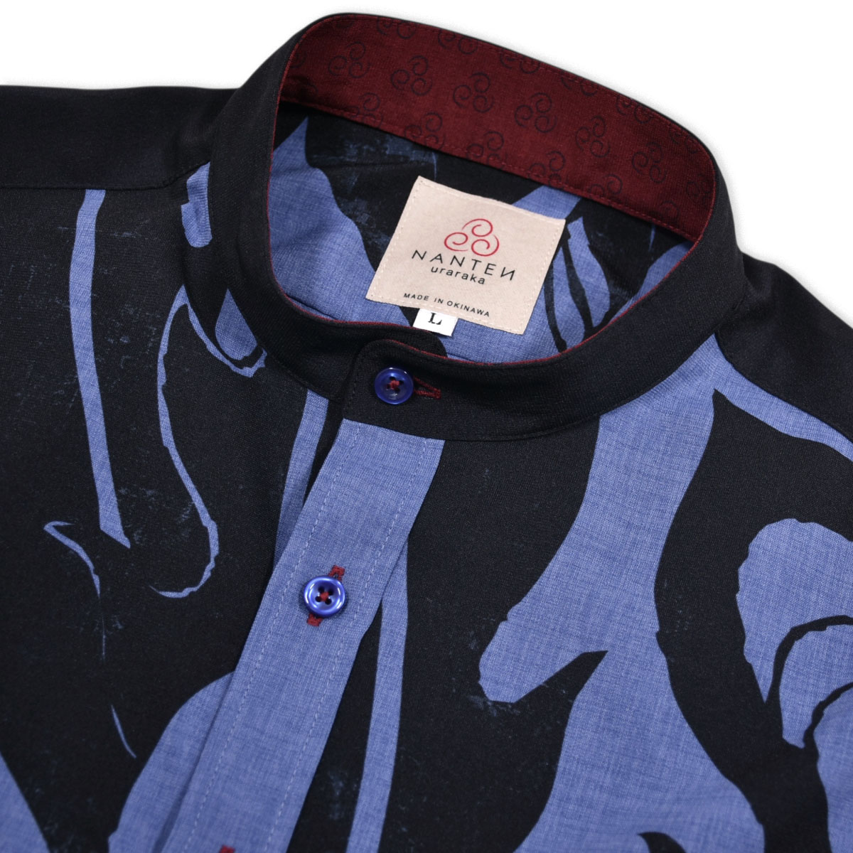 襟はバンドカラーで軽やかな着心地。一度は試してほしい1 着です。