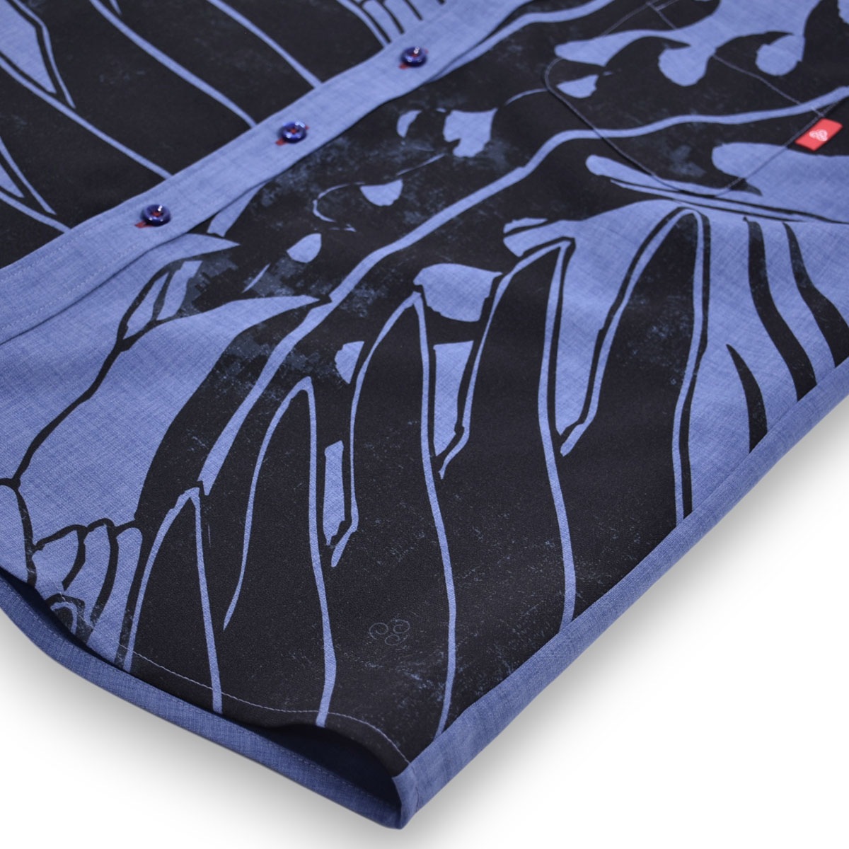 ハイビスカスなどの5つの花弁を持つ花をデフォルメした紋様柄を左胸に同色で刺繍。