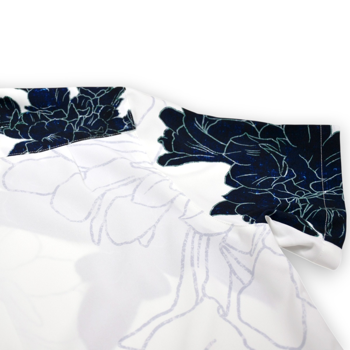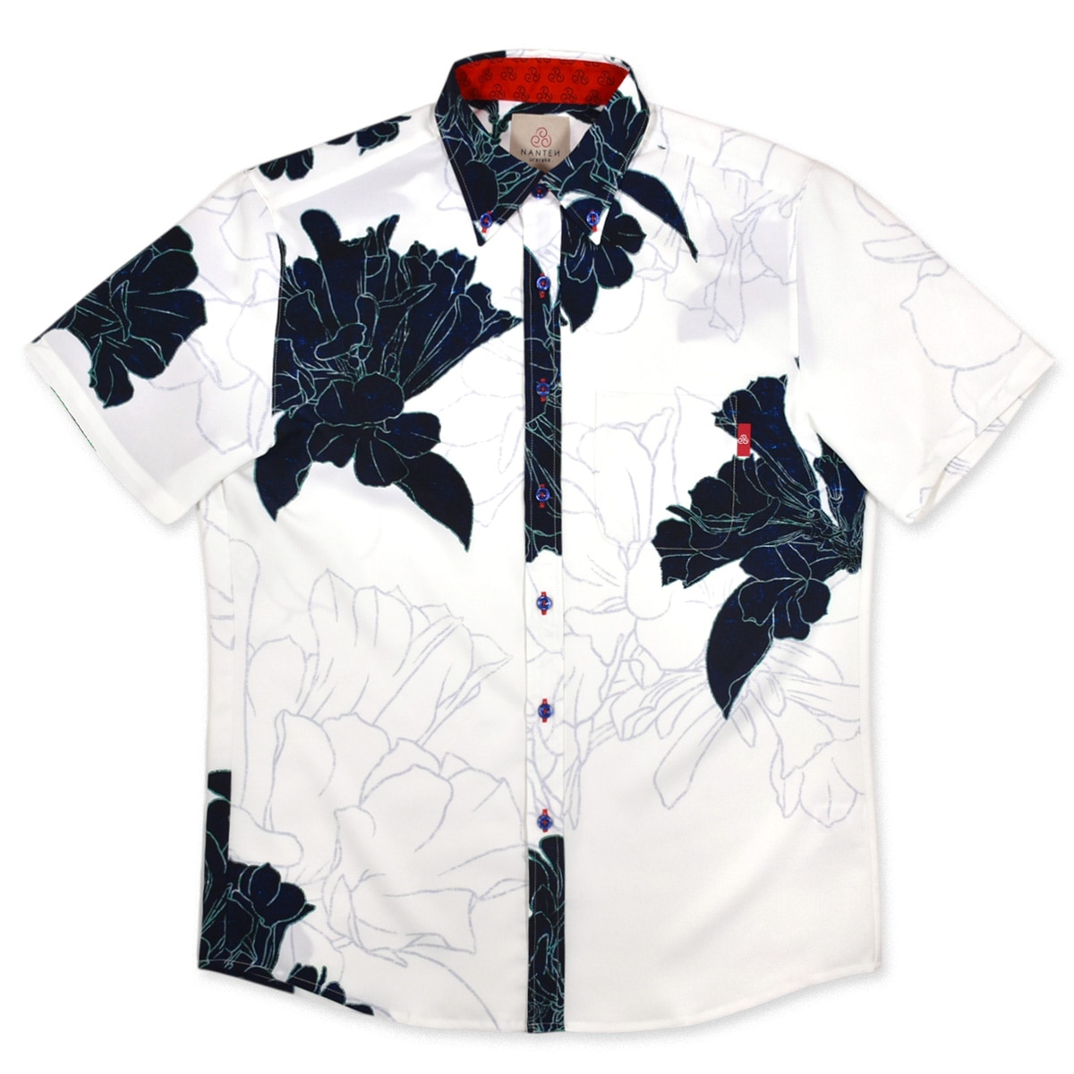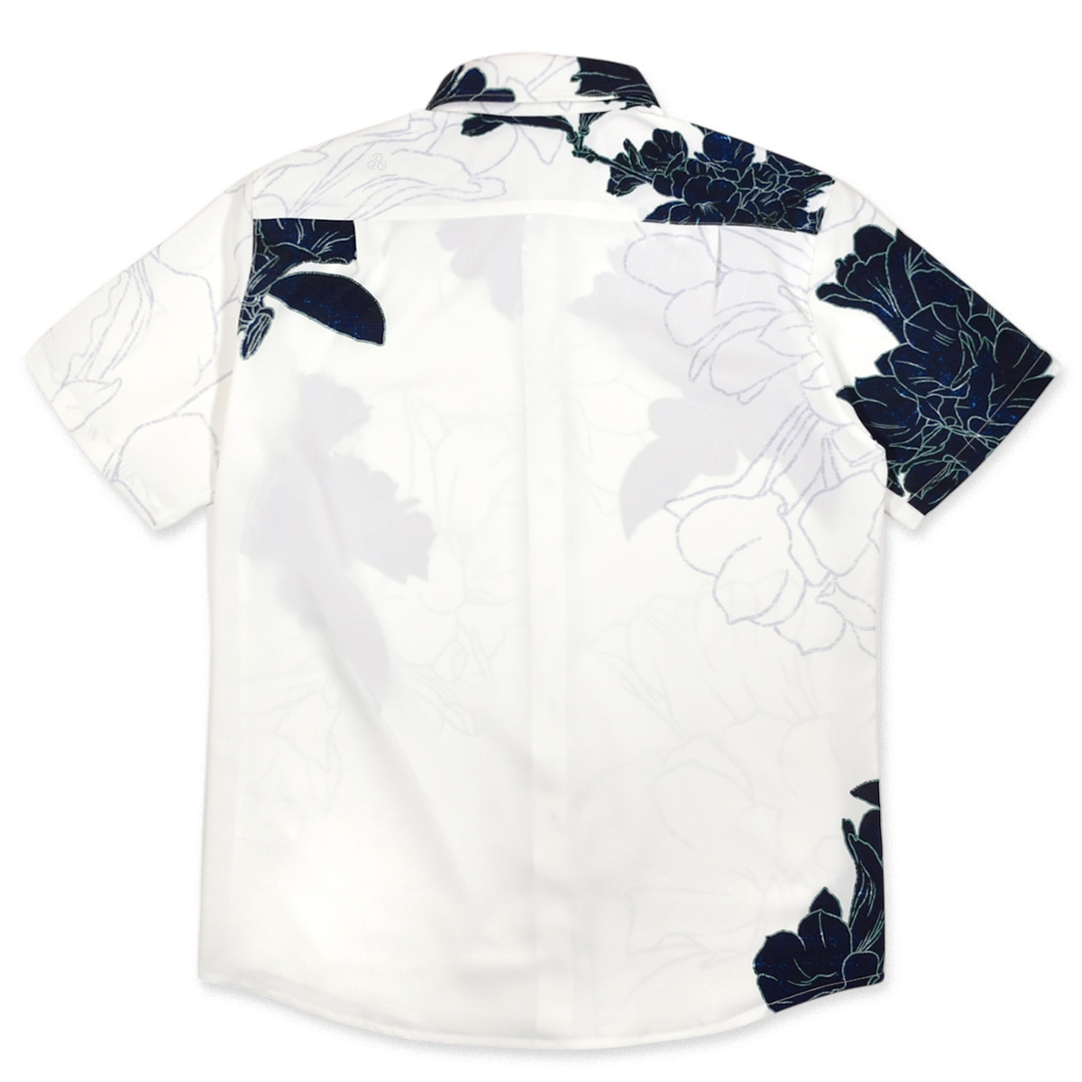 ハイビスカスなどの5つの花弁を持つ花をデフォルメした紋様柄を左胸に同色で刺繍。
